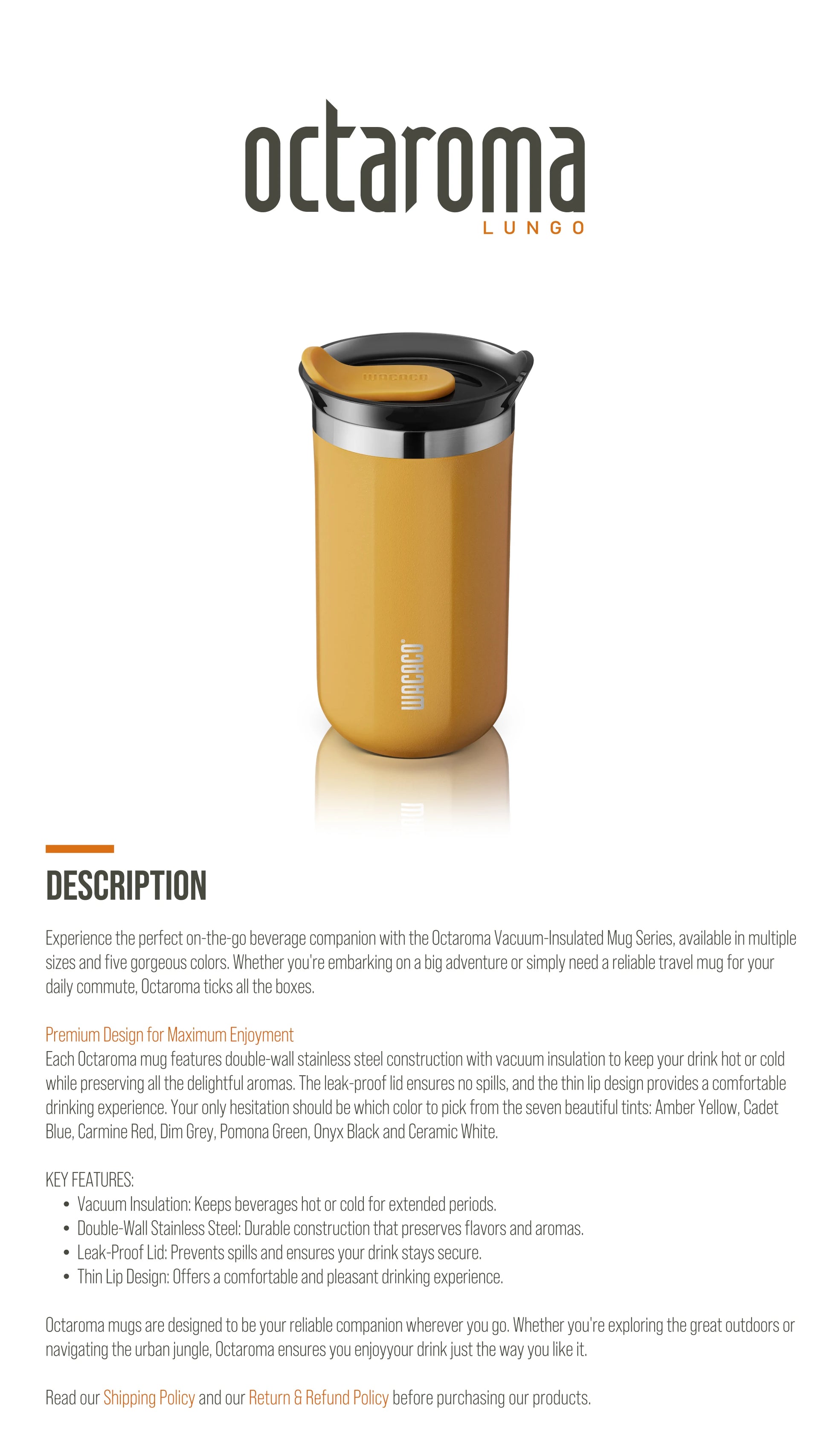 • Advanced Vacuum Insulation – Preserves coffee flavor and temperature longer.